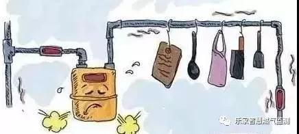 管道上不能悬挂或放置任何物品,以免造成管道接口松动发生漏气,同时不要将电线缠绕在燃气管道上,避免发生电火花引起火灾事故。